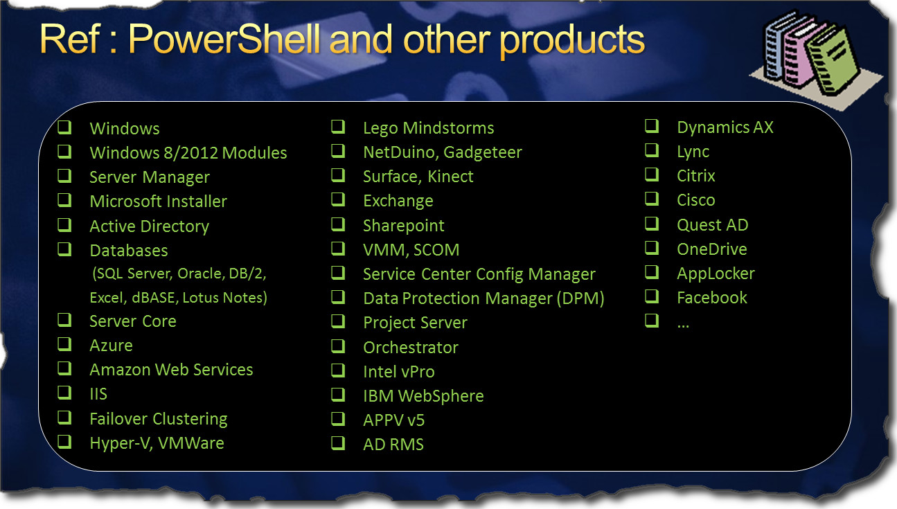 Because many other manufacturers are adopting it : IBM, VMWare, Cisco, Lego, Intel, Citrix... PowerShell is not a Microsoft-only closed technology, but offers a broader usage. And not only in IT ; also in home automation, electronics, automotion... Everything we learn will be valid in these environments.